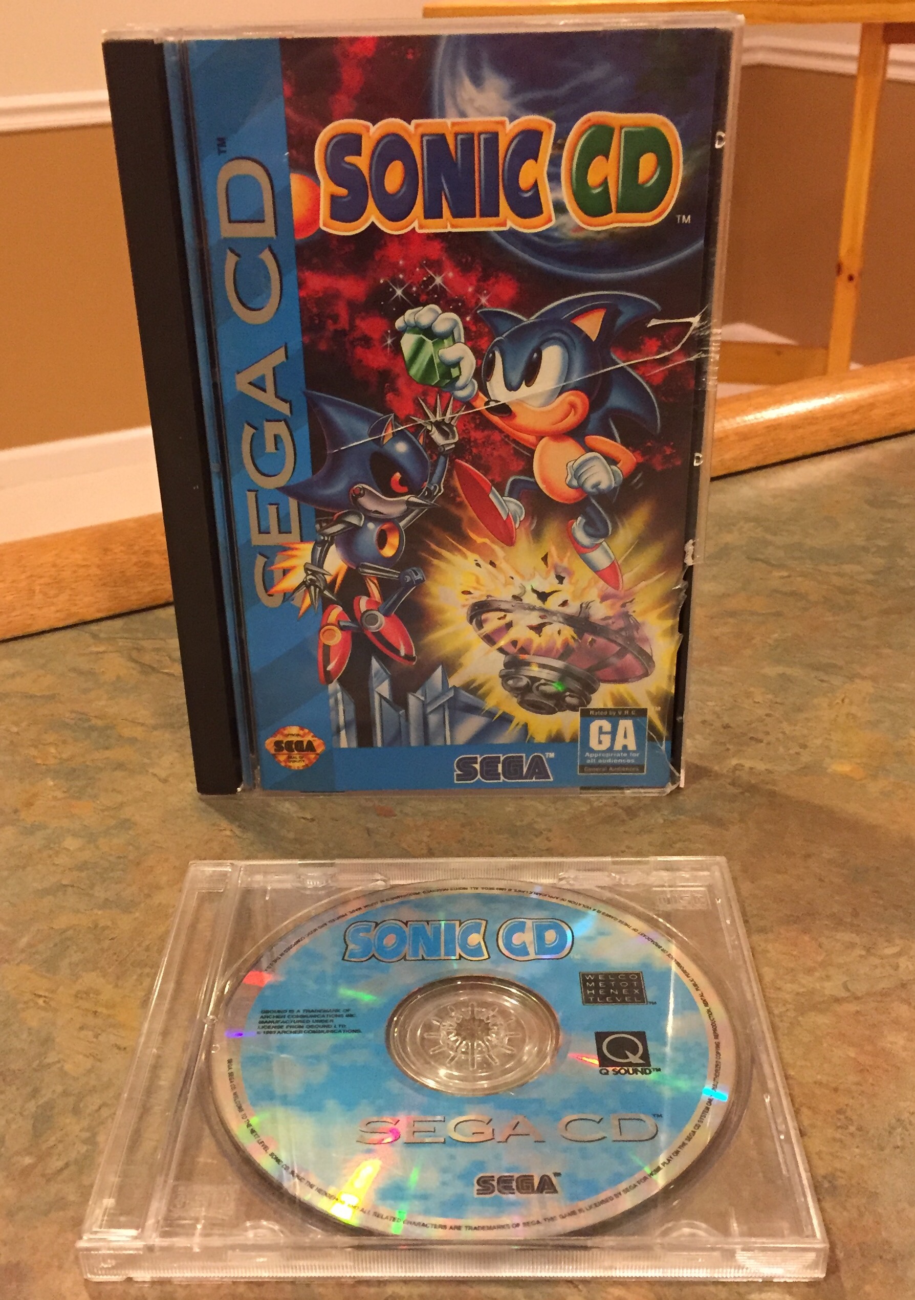 Sonic CD is a 2D platformer not unlike the 3 Genesis Sonic titles and Dr. Robotnik is still up to his usual tricks and attempts at world/universal domination. The key plot line that differentiates Sonic CD from the rest is the time travel aspect. In Sonic CD you start in the present but there are transporters that take you to different zones such as “past”, “good future” and “bad future”. The goal is to earn a good future in all worlds and ultimately defeat Dr. Robotnik again. The time travel plot provides an interesting twist to the typical straightforward Sonic adventure and makes this one unique.There are a number of ways to accomplish this and I haven’t mastered or defeated this game yet. As with all of my Sega CD games, I didn’t have or know anyone that had one when it was new so this is my first play through of Sonic CD and I’m loving it. Definitely one of the best games for the Sega CD.