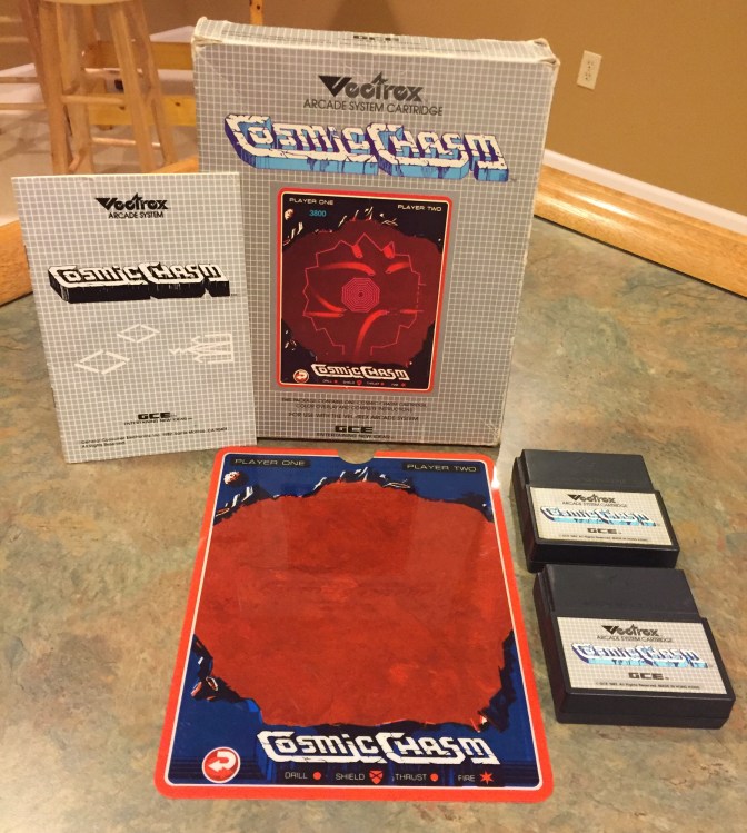 One of my favorite games for the Vectrex is my game of the week, Cosmic Chasm. On the surface, it looks like a typical early 80’s space shooter where you control a spaceship armed with lasers and a shield. But your ship also has a drill (more on that later) and your job is to not just destroy enemy space ships but instead your ultimate job is to destroy the enemy space station from the inside out by blowing up the core.