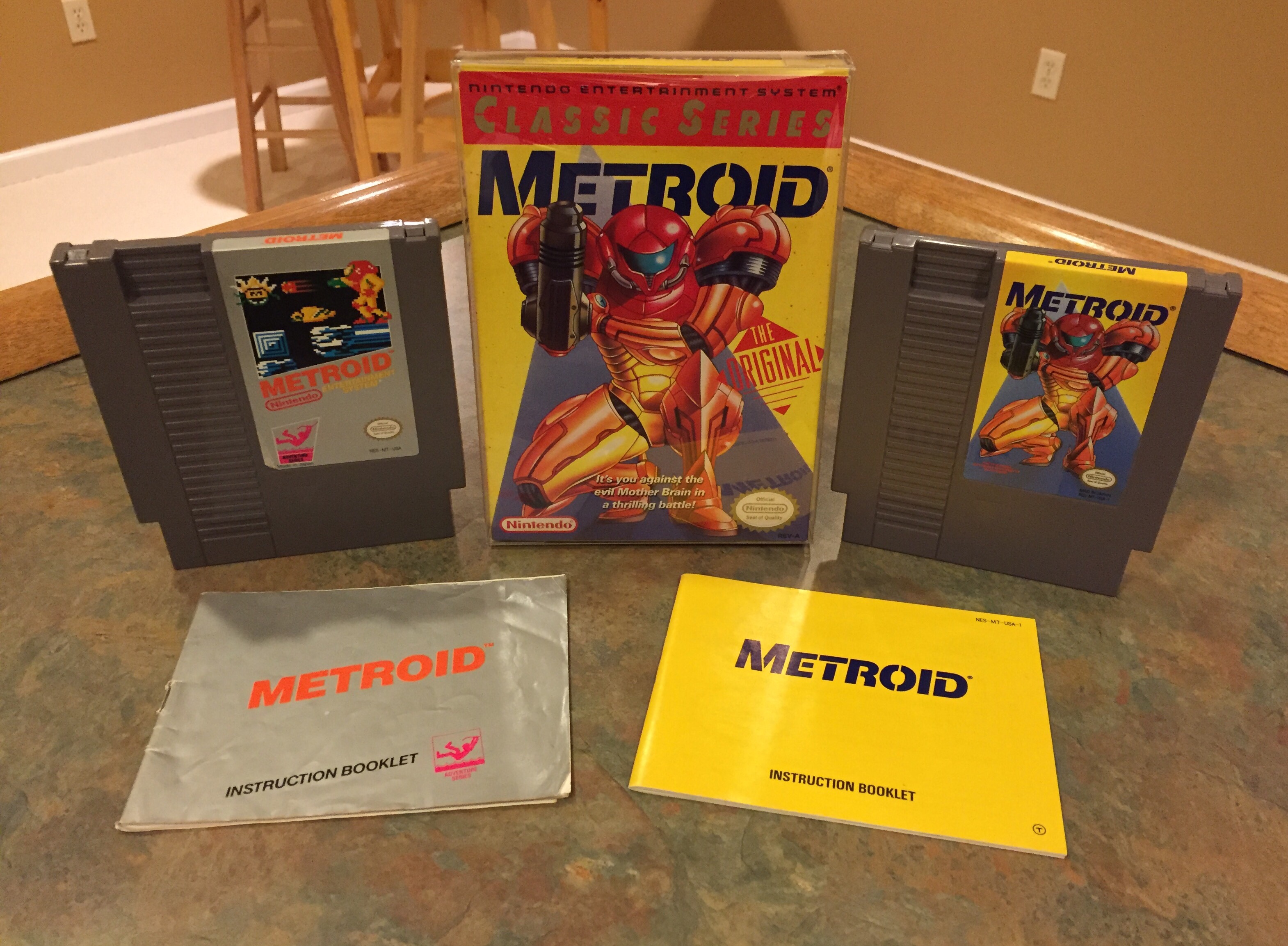 Full disclosure time as I believe the statute of limitations has expired on the crime I am about to admit to (plus I was 12 at the time). In the summer and fall of 1987 when I was at my peak NES obsession before owning my own console, I would stare at and read the backs of the game boxes when at my local Wal-Mart. Back then, NES games were not shrink-wrapped and instead were hung up on store racks using hang tabs on the back of the boxes. This meant that anyone could open the game box and look inside. I must have been so interested in this particular game that I felt compelled to open up the box and steal the manual to take home and study. Sorry Wal-Mart and whatever kid bought and took home that copy of Metroid only to find that it was manual free. Once home, I began poring over the contents of the manual. I couldn’t understand how it was possible to have such an open world set-up in a video game. The concept was so drastically different from what the arcade games I was familiar with offered that I couldn’t even imagine what it would look like to have multiple paths to take. This wasn’t a straightforward point A to B to C video game and it blew my mind. Once I finally got my NES and my Super Mario Bros obsession waned, Metroid was one of the early games I rented then finally owned. After playing and finishing the game, I sold my original version but I must have quickly regretted it as I eventually re-bought Metroid later in the lifespan of the console. At this point, Nintendo was no longer selling Metroid in it’s original packaging configuration but instead sold it as part of the “Classic Series”, which is the complete copy I own today. I still have the silver manual that I stole from Wal-Mart that day back in 1987 and not too long ago picked up a silver label cartridge to go with my stolen loot.