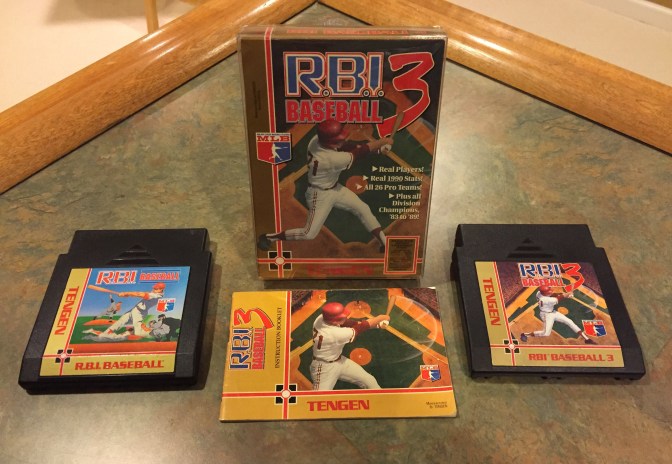 R.B.I. Baseball 3 (game, manual, box) – The third and final installment in this franchise was a big leap compared to the first game. I never owned RBI 2 but once I checked out the back of the box for RBI 3 and saw that ALL MLB teams were represented instead of a small portion like in the first game, I was instantly interested. My favorite team growing up was the Milwaukee Brewers so I was excited to take control of the team I followed and control up and comers like Gary Sheffield & Greg Vaughn while still playing with perennial all-stars like Paul Molitor and Robin Yount. I would go on to play this game over and over again, completing seasons thanks to the password feature. RBI Baseball 3 was to RBI Baseball what Tecmo Super Bowl was to Tecmo Bowl. A-