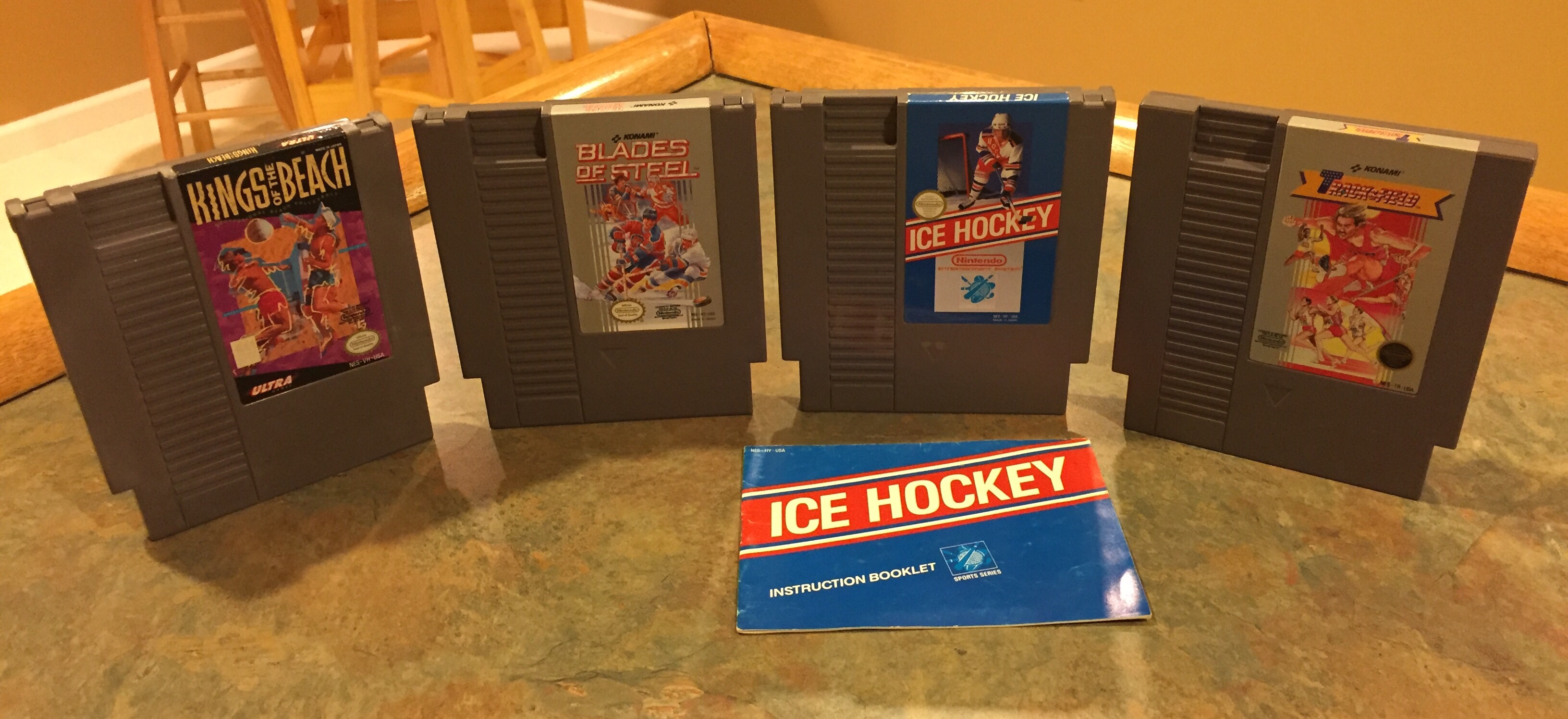 Blades of Steel (game only) – One of the top 2 hockey games available for the NES and a popular Konami title. Realistic graphics compared to the cartoony look of Ice Hockey plus close up fighting sequences made Blades of Steel the hockey connoisseur’s choice back in the day and is a stand out game. A-