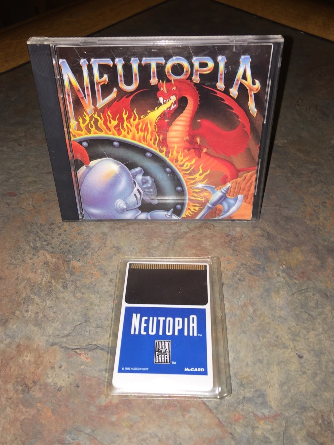 Neutopia is a fantasy adventure game for the TurboGrafx-16 with more than a passing resemblance to The Legend of Zelda. Released in 1990, several years after Zelda was released for the NES but a couple years before Zelda: A Link to the Past, the game takes place in the land of Neutopia and you play as the chosen one, Jazeta. Jazeta must save Neutopia from the evil demon Dirth, who has kidnapped Princess Aurora and stolen the eight spiritual medallions. The medallions are hidden in eight different crypts spread across 4 different spheres (land, subterrain, sea & sky). Notice any similarities to a certain green hat wearing boy and his search for the triforce? Anyway, Neutopia’s gameplay is simple to learn for anyone who has played Legend of Zelda. You possess a sword which you can ultimately increase the power of and you can also equip a number of weapons, shields and items to use either with the second button (bombs, fire rod, life bar filling potion, etc). You have your overworld sections of the game where Jazeta is meant to gather clues from the people hidden in caves and in staircases under trees while also gathering his special items and money to buy other goodies that the enemies don’t give him. Once he’s prepared and has all the necessary items to advance, Jazeta is expected to enter one of the crypts in the underworld and traverse the mazes in search of more items, the crypt master’s key and ultimately a battle against the crypt boss. Defeating the boss will give Jazeta a medallion and another bar or life (not a heart container mind you). Once all 8 of the medallion’s are gained, the final crypt opens and the battle against Dirth begins.