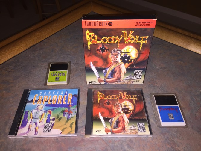 Dungeon Explorer is an interesting game that upon first inspection looks like a slightly graphically superior Gauntlet clone. The view is top down, you can select one of a variety of characters to take into battle such as a fighter, a thief, warlock, elf, witch, et.al. Alien monsters endlessly come out of the ground from generators that can be destroyed. These are all gameplay options pulled directly from Gauntlet. Where Dungeon Explorer veers off into its own territory is in the depth of the game. Unlike Gauntlet, you can increase your player’s attributes after defeating level bosses, equip a variety of magic and gain accessories which offer different power-ups for your player. The story is that you’re off to find a special stone that can restore peace and happiness in your kingdom which has been taken over by aliens that that now rule with terror and violence. This stone lies somewhere in the kingdom’s dangerous dungeons. You don’t spend your entire journey in dungeons in spite of the game’s title. There are overworld sections of the game you must traverse to get from dungeon to dungeon by talking to townsfolk and gaining weapons & accessories like any other RPG. This isn’t a turn-based title as all of your battles occur in top down mode. Dungeon Explorer was a TG-16 launch title and it looks the part. It’s not the prettiest game and has its issues. I haven’t spent a lot of time with this title, focusing more on my Games of the Week, so there may be more to uncover that might change my mind on Dungeon Explorer as being only a slightly above average action adventure title.