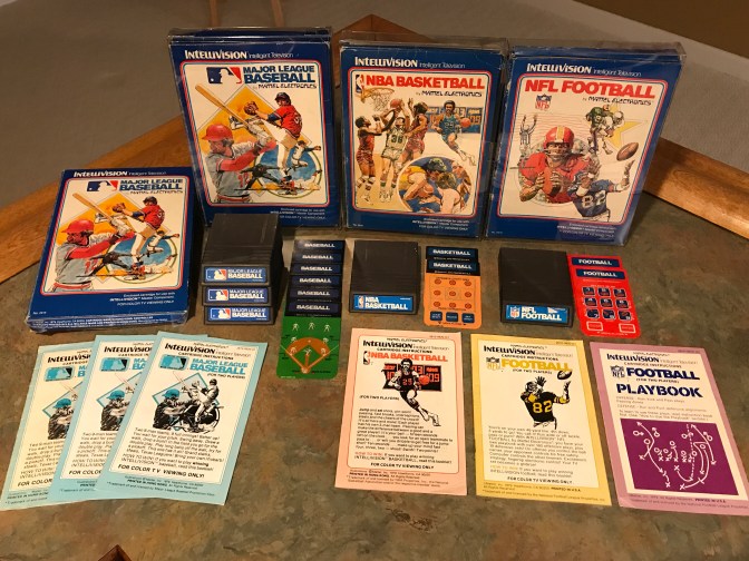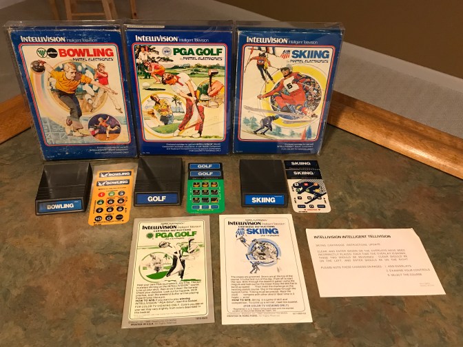 Considering how important Mattel’s sports offerings were for the initial success of the Intellivision console, these games don’t get a lot of notoriety today as being the innovative and groundbreaking titles they were. The infamous George Plimpton comparison ads relied heavily on the “look at Atari’s pathetic version of baseball compared to ours” theme and they weren’t wrong to do so. Atari baseball was pathetic. Even the NES black box original, Baseball, was pathetic. Getting player movements and AI (in one player options) that was just right, visuals that actually looked like a baseball diamond and the perfect level of difficulty to master but easy to jump into right away was tricky business. Now add in other popular American sports such as football, soccer, hockey, bowling, boxing, golf, tennis and even skiing and you have a formidable early line up of sports games available to an Intellivision owner. Then Mattel dropped the coup de grace on Atari….endorsement by the various sports leagues! Not just football, NFL Football. Not just baseball, Major League Baseball. Not just basketball, NBA Basketball. Not just hockey, NHL Hockey. You get the idea. They even went so far as to get the minor endorsements for niche sports such as PGA Golf, NASL Soccer, PBA Bowling. What did this really mean for the game? Nothing at all. There are no options to play as the Los Angeles Dodgers, the Boston Celtics or the Green Bay Packers. It was just for show but in conjunction with the impressive visual displays these games provided, it probably worked. I think it’s fair to say that sports fan’s console of choice in the late 70s and early 80s was the Intellivision. I don’t own all of the sports titles on the Intellivision, far from it. I can’t comment on how good games like boxing, tennis, hockey or soccer are but the 6 sports games I do own (not counting Auto Racing which I already covered) can be evaluated for their impressive legacy.