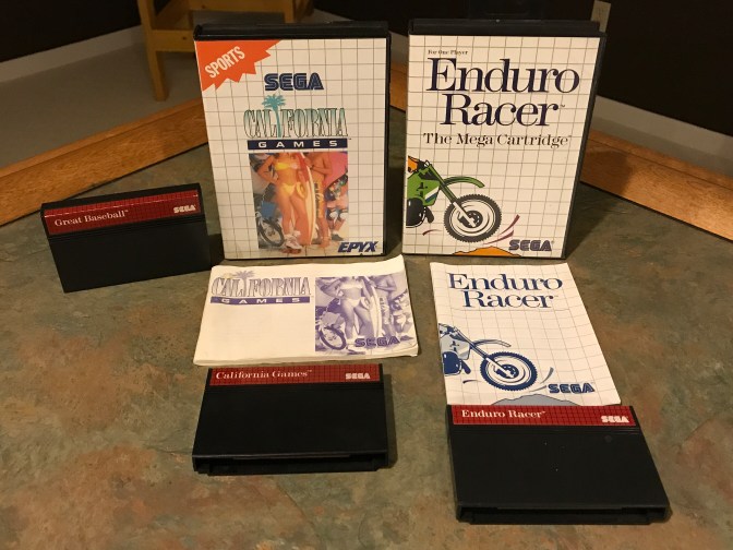 Considering the Master System is a Sega manufactured console, I have very few sports games for it. This is by design as the Master System is notable for a number of things, but truly enjoyable sports games are not one of them. Many of them fall into the “Great” line of unimaginatively named titles such as Great Basketball, Great Football, Great Hockey, et al. Like the Turbografx-16’s awful TV Sports line of sports games, the Great series of sports games for the Master System are anything but. I guess I always felt like the Master System had so many great arcade ports and unique side scroll/adventure games that money and time wasted on sports titles wouldn’t be necessary. That said, I do have a few racing and loosely sports related games in my collection and these are just a few.