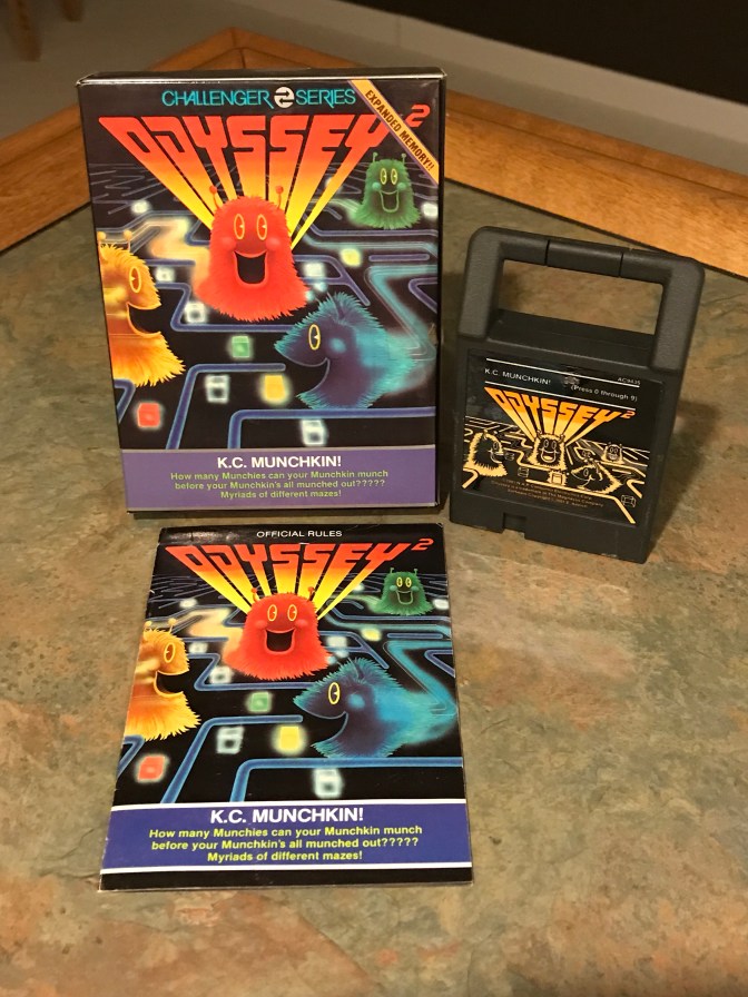 That is the question posed on the manual & back of the box of this week’s game of the week, the controversial (at the time) Odyssey² game, K.C. Munchkin. That question also serves as succinct synopsis of a game with an interesting history.
