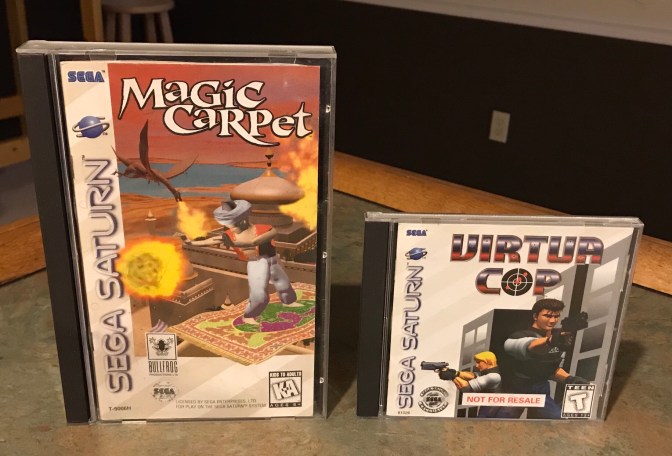 Magic Carpet and Virtua Cop offer very different styles of game play (open world 3D shooter vs. light gun shooter) for the Saturn but both utilize the first person perspective and were well received titles when released. But have they held up?