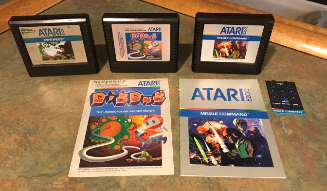 It should come as no surprise that some of the best games available on the Atari 5200 are ports of arcade hits. Even though this was a next gen system when it came out in 1982, the types of games that were popular for home consoles were still primarily arcade ports or arcade port clones. So Atari took the approach that if they could show potential buyers that the most popular arcade hits would look better on the 5200 than any other console on the market, they would be able to continue their status as market leader. That strategy worked, but only for a brief period. It certainly wasn’t the fault of the three games highlighted in this post, Centipede, Dig Dug, and Missile Command, that the 5200’s life span was cut drastically short.