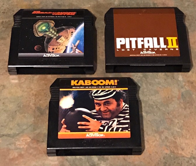 One additional thing I noted when playing “Dreadnaught Factor”, “Kaboom!”, and “Pitfall II: Lost Caverns”, is that I had a much harder time getting them to work in my Atari 5200 console then any of my Atari manufactured carts. I don’t know if it’s a coincidence, but all 3 required multiple tries and adjustments into the console’s cartridge slot before I could finally get them to work.