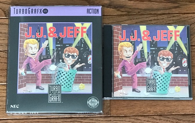 A completely watered down version of the Japanese’s subversive platformer gets suitably watered down cover art. “J.J. & Jeff” come off as slimy used car salesmen with their suits, slicked back hair and douchey “sunglasses at night” looks. One of them (who cares which one is which) is kicking a trash can that the other is sitting in while he creepily grins at us as he tosses a soda can to the ground. Are they friends? Enemies? Litterbugs? What is this game? Based on the artwork, you would have no idea and likely would have no inclination to care.