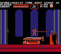 The other extremely harrowing stage is 17, the second to last stage in level 6 before fighting Count Dracula. This stage is particularly rage inducing because you not only have to watch out for Eagles dropping the always annoying Hunchback enemies that leap at you in erratic patterns, but you’re also in constant worry about falling to your death. This stage takes place inside a clock tower filled with platforms which anyone familiar to Castlevania knows are simply magnets for your extra lives. Getting through stage 17 intact is one of the most nerve wracking experiences in 8-bit gaming history, considering how close you are to the game’s final battle. It can be particularly disheartening to fall to your death repeatedly and have to start the entire stage over.